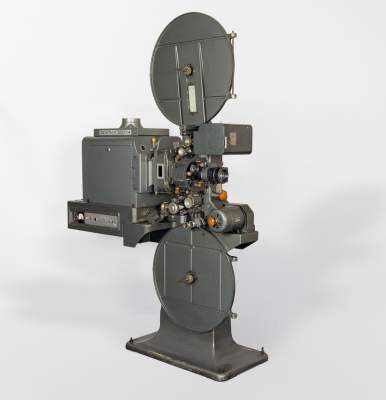 Projecteur 35mm de cabine, reconnu pour sa stabilité et sa délicatesse avec les films, nos deux exemplaires sont sur roulettes pour un transport plus simple.